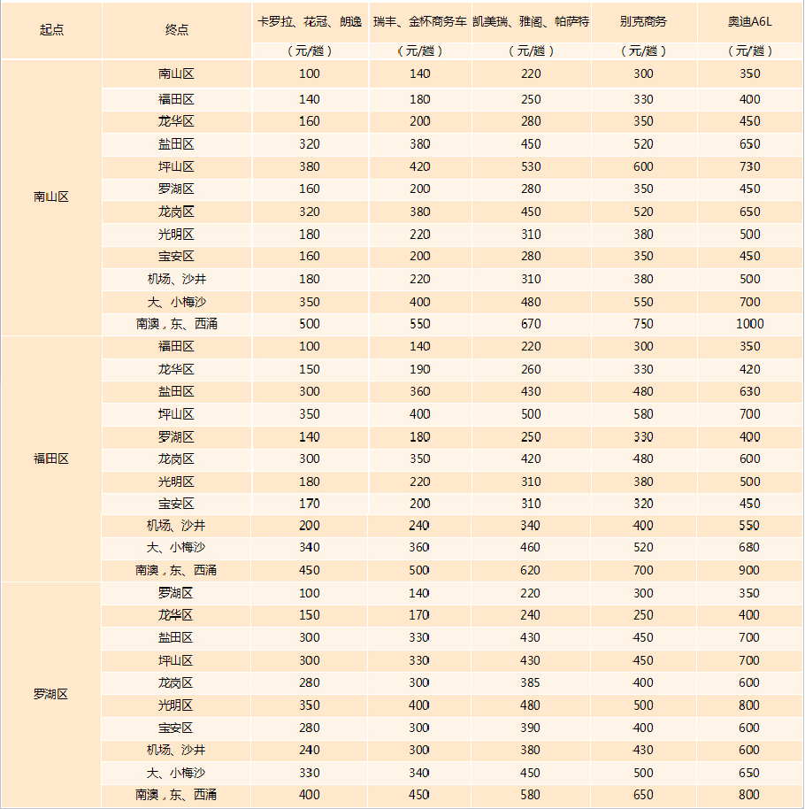 3.上述价格表中未涵盖区域,价格另议。